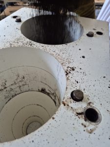 The mixture is then placed into two-part metal moulds made from Teflon-coated aluminium. The surface quality and pressure of these moulds are critical, initiating the natural binding reaction within the cork as it begins to set. Determining the precise treatment time is a matter of testing and refinement, as different cork combinations, particularly when mixing natural and black cork, react in subtly different ways.